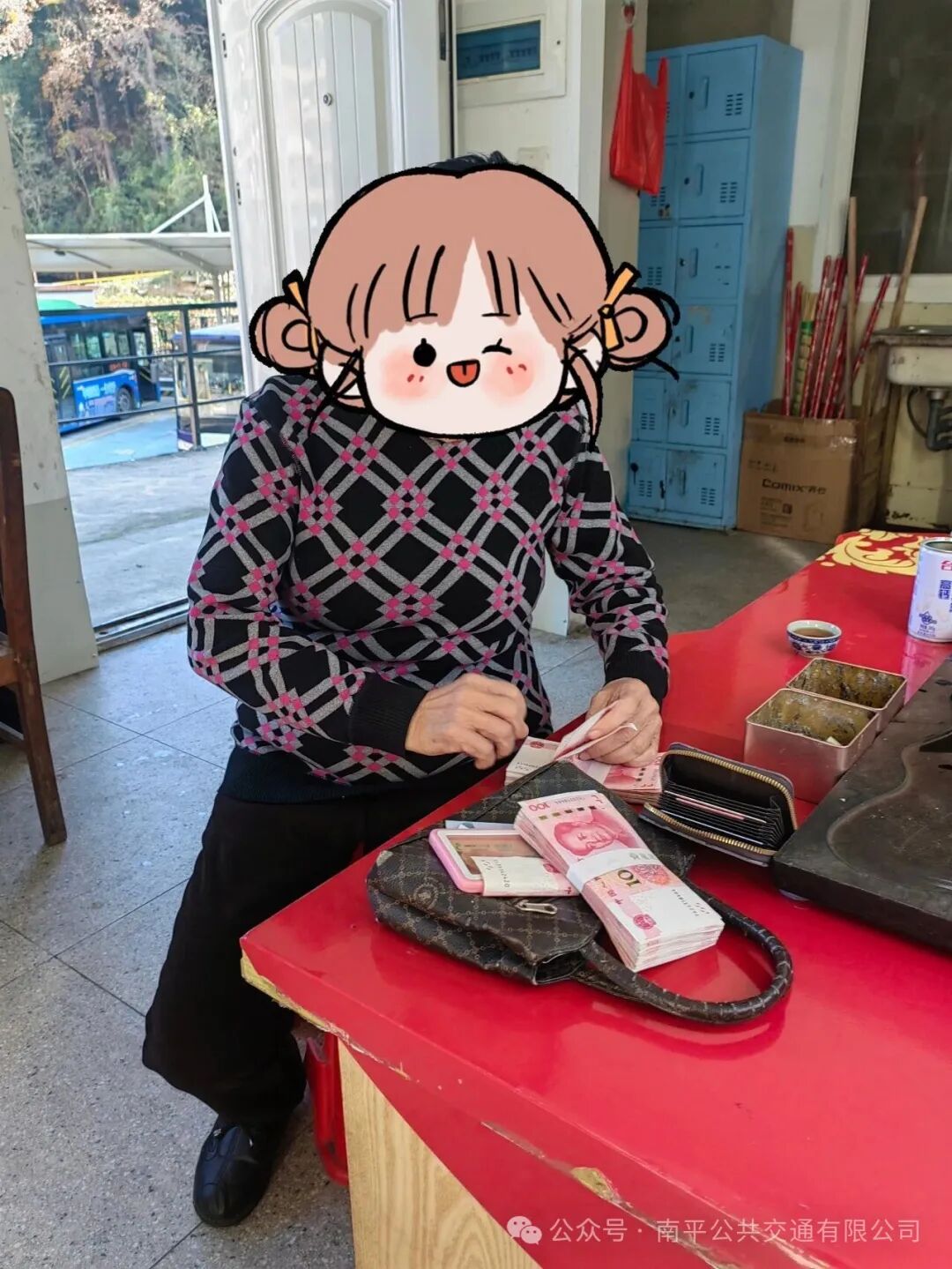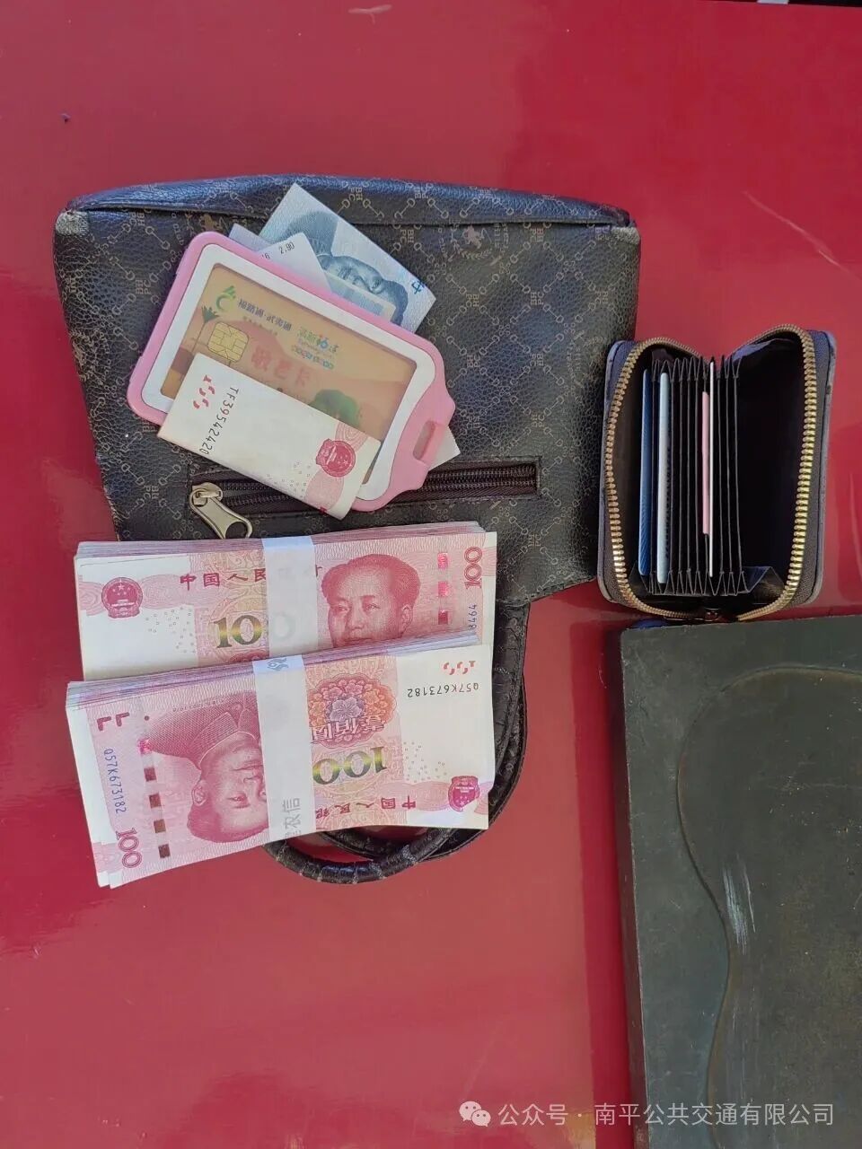 车辆到达终点站后,应火旺第一时间将手提包交给线路长,两人一起查看清点,包内有一个卡包和两万元现金。应火旺担心失主着急,立即将情况上报公司,并发布失物招领信息。与此同时,陈阿姨也发现手提包遗落到车上了,心急如焚,立即乘坐30路公交车向驾驶员求助。当车驾驶员蒋际鑫安抚并告知她:“包没丢,已经被7路车驾驶员收好,保存在公交站点”,并带着陈阿姨前往江南公交首末站认领。随后,蒋际鑫在驾驶员群里发布失主已经找到,正赶往站点认领的信息。