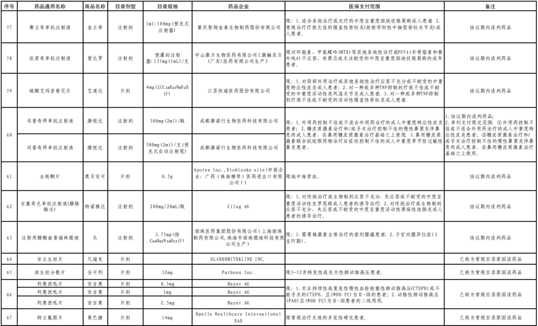 在新版目录中,包括治疗多发性硬化、银屑病等疾病在内的115个国谈药品实行单列门诊统筹支付。这些药品纳入条件为国家谈判药品中适于门诊治疗使用,使用周期较长或规范治疗年度总费用较高,且适应症未被我省现行门诊特殊病种全覆盖的治疗用药。参保人员在定点医疗机构门诊就诊后开具目录中药品时,按相关规定享受医保待遇。