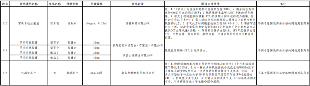 115个药品具体名单如下↓